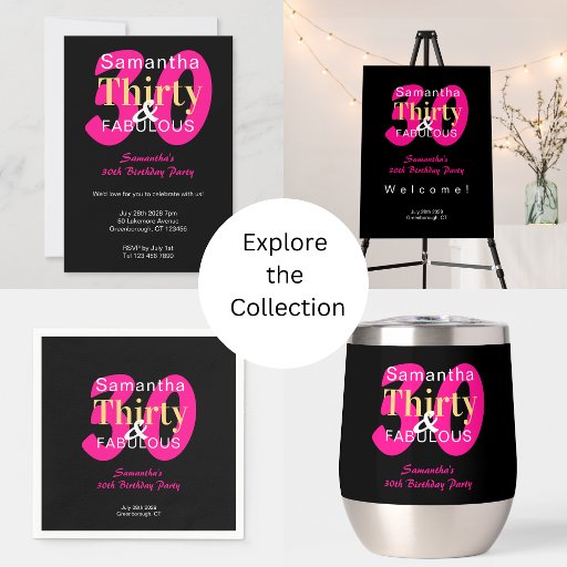 30th Birthday 30 and Fabulous Hot Pink Black PartyConçu par Only The Moon