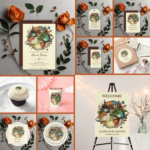 Invitation Adventure Attend le Baby shower Vintage Globe