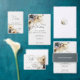 Écran étonnant calle couleur aquarelle, détaillé en or et encre noire. Arrière - plan de lavage à l'aquarelle rêvé - floral dans les teintes douces d'or et beige crémeux, lavement arrière - plan dans gris bleu poussiéreux muet. Facile à customiser avec vos détails spécifiques.