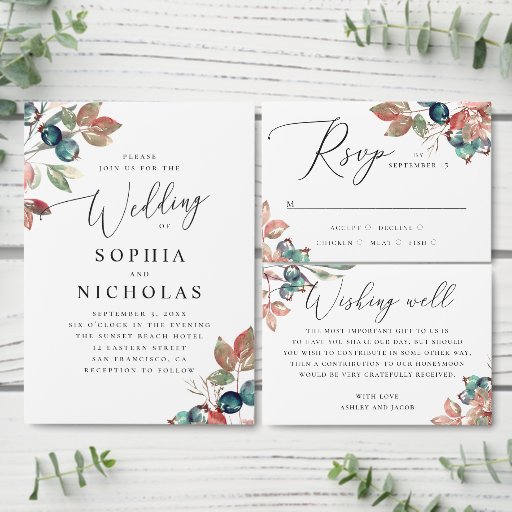 Botanical Berry Wedding Suite | Watercolor FallConçu par Anna