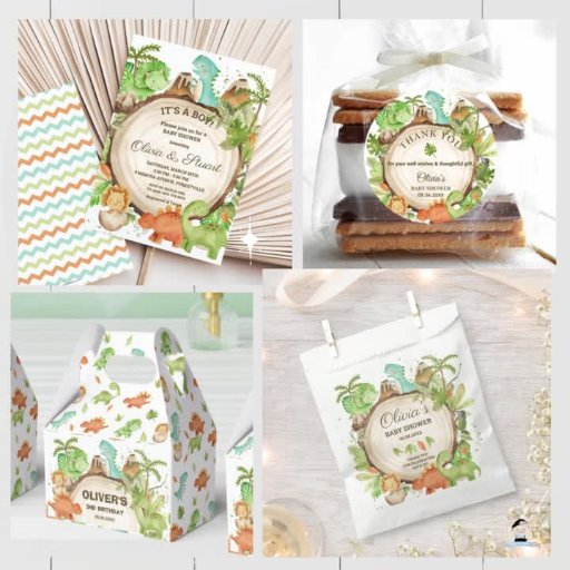 Invitation Aquarelle Cute Dinosaur Baby shower Garçon de verd