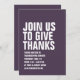 Avec une typographie blanche audacieuse, cet automne violet Thanksgiving dîner invitation est facilement customisé et donne le ton pour une fête amusante et décontractée de la dinde jour