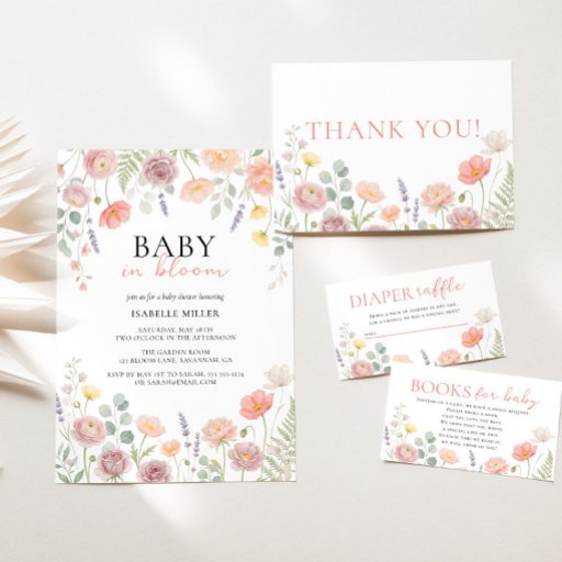 Invitation Baby In Bloom Blush Teal Spring Floral Shower Arch