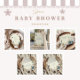 Un baby shower ludique sur le thème de l'espace, avec des fusées, des planètes, des astronautes et des étoiles fantaisistes. Les illustrations amusantes de style doodle aux couleurs douces créent une atmosphère imaginative et aventureuse, parfaite pour célébrer un petit qui est déjà sorti de ce monde.
