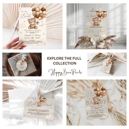 Invitation Ballons Ours Teddy Bearly Wait Boho Baby shower