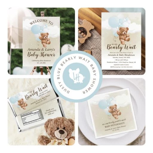 Ce Baby shower Bearly Wait Neutre, Bleu et Blanc est parfait pour votre évènement d'ours peluche et pelucheux !