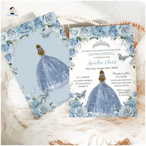 Soft Baby Blue Floral Silver Quinceanera Birthday Conçu par The Happy Cat Studio