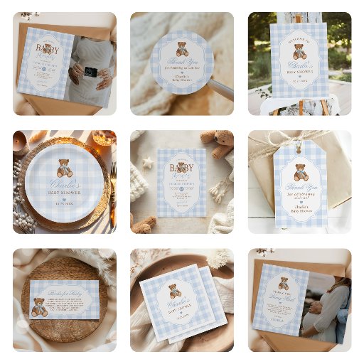 Blue Gingham Teddy Bear Baby ShowerConçu par Steven Carr