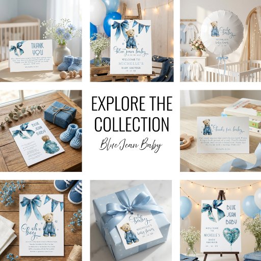 Set the scene for a joyful celebration with these blue jean baby themed baby shower invitations. Featuring an adorable denim bow, a denim printed heart balloon, and a modern invitation template, they're perfect for honoring the parents to be.