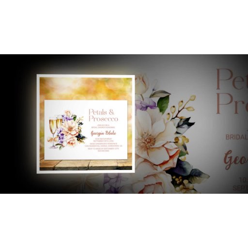 Invitation vos amis et votre famille pour assister à votre douche nuptiale avec cette élégante invitation. L'invitation présente deux verres de champagne parmi les pêches et les fleurs roses. Vous pouvez ajouter sans effort tous les détails nécessaires au texte personnalisable. Pour rendre vos invitations uniques, vous pouvez choisir parmi différents types de papier et styles d'angle. En outre, vous avez la possibilité de télécharger l'invitation.