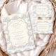 Un design doux et vintage avec des nœuds bleus délicats, des détails rayés doux et des illustrations charmantes de jardin de myrtilles. L'artwork de style toile avec des animaux adorables et des paniers de fruits crée une atmosphère de conte de fées classique dans une palette de bleu poudre doux. Le cadre central orné ajoute de l'élégance tout en gardant l'apparence générale légère, raffinée et intemporelle. Parfait pour une baby shower avec un thème de jardin doux et une touche de charme traditionnel.