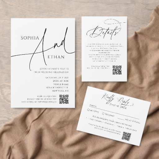 Invitation Calligraphie minimaliste Mariage blanc Décontracté