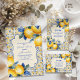 Invitation à la douche nuptiale à thème citron avec aquarelle illustrations de citrons, fleurs de citrons et motif de tuiles méditerranéennes. Personnalisez en ajoutant les noms, la date, l'heure et d'autres détails. Cette invitation à la douche au citron nuptiale est parfaite pour les douches à thème mariages d'été et méditerranéennes.