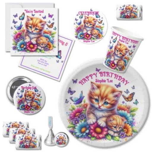 Invitation Chatons, papillons et fleurs Anniversaire