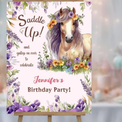 Ga op stap met ons 'Horse 3rd Birthday Girl Paarse Floral Saddle Up In Invitation!' Maak in stijl de aftrap voor dit schattige cowgirl thema🎂 Pak nu de jouwe en laat het pony-feest beginnen! 🎂