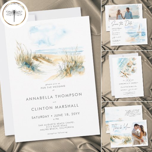 Invitation Coastal Beach Shell Modern Watercolor Wedding