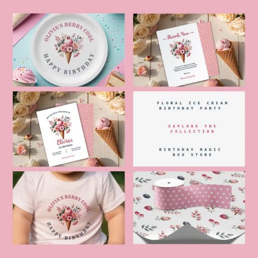 Invitation Crème glacée Floral Berry Cool Fille fête d'annive