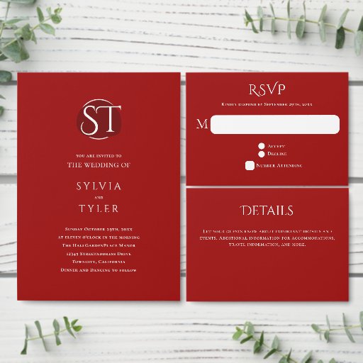 Red Modern Monogram Crest Wedding SuiteConçu par Melissa Patton