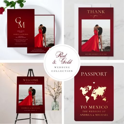 Invitation Crimson Red & Gold Script Mariage photo moderne