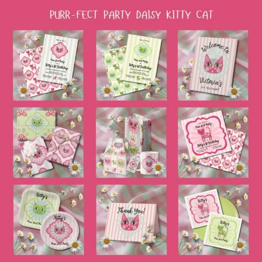 Invitation Daisy Kitty Visage Purr-fect fête d'anniversaire