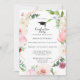 Elégante aquarelle rose pâle fleurs et cadre vert feuillage, invitation à la fête de remise de diplômes. Le style de police et la couleur peuvent être customisés. Le dos de la carte est doté d'un motif à rayures chic rose.