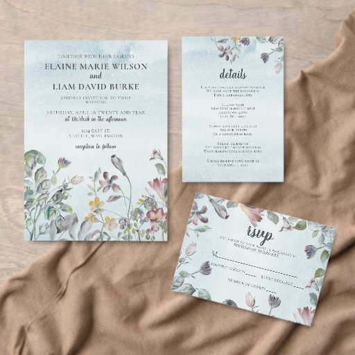 Dusty Blue Floral Spring Invitations de mariage