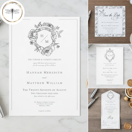 Elegant Black Chinoiserie Bird & Crest WeddingConçu par Kathe Santillo