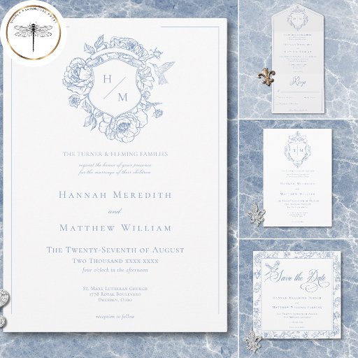 Elegant Blue Chinoiserie Bird & Crest WeddingConçu par Kathe Santillo