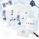 This romantic, vintage-inspired wedding suite features soft blue and white watercolor roses paired with navy blue classic cameo-style silhouette portraits of a couple framed in ornate oval borders. The refined navy blue calligraphy and clean white background create a timeless, elegant aesthetic reminiscent of the Regency era inspired romance. Perfect for Regency, vintage, classical, or garden-style weddings.
