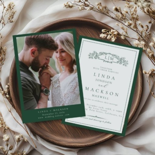Invitation Élégant Mariage Monogramme Emerald Green Crest