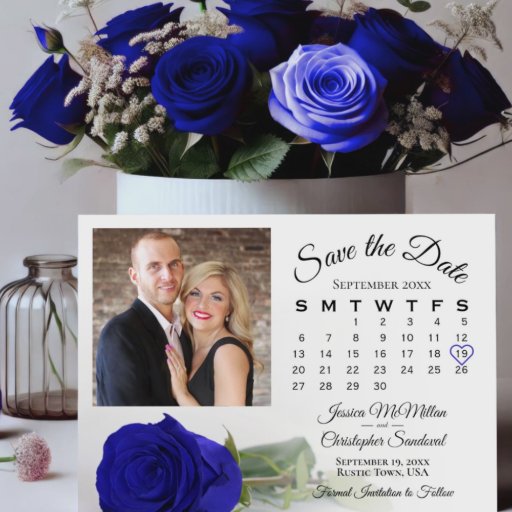 Invitation Élégant Royal Blue Rose Classy Script Mariage