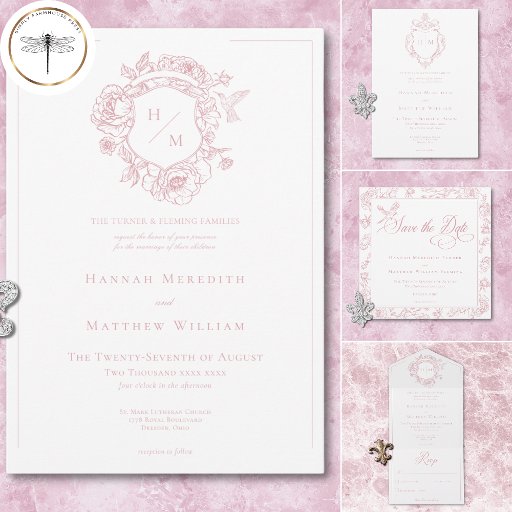 Elegant Pink Chinoiserie Bird & Crest WeddingConçu par Kathe Santillo