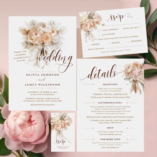 Chic Elegant Floral Peonies Boho Wedding Conçu par Ramona R Designs