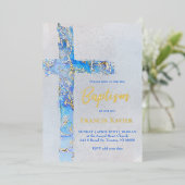 Invitation En Aluminium Croix abstraite de l'aquarelle Baptême