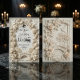 Set the tone for a timeless union with this sophisticated design, featuring an intricate faux-engraved aesthetic and romantic vintage silhouettes.