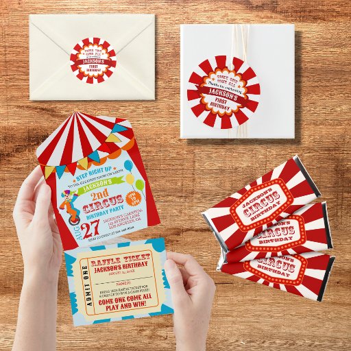 Bienvenue à la fête des Anniversaires de enfants du Festival du cirque du Carnaval! Ce design est parfait pour ceux qui cherchent à lancer un panier d'anniversaire inoubliable pour leurs petits. Avec un thème vibrant et excitant qui combine tous les plaisirs d'un carnaval avec l'excitation d'un cirque, cette fête sera certainement un succès. Doté d'une gamme d'éléments classiques comme des affiches de cirque vintage, de grandes tentes haut de gamme et d'invitations "Venez un, venez tous", ce design saisit l'essence du plus grand spectacle sur terre. Que vous planifiez l'anniversaire d'un garçon ou que vous soyez à la recherche d'un thème rétro pour la fête des enfants, le Carnival Circus Festival a tout ce qu'il vous faut pour rendre votre célébration vraiment inoubliable. Alors pourquoi attendre ? Amusez votre fête avec la fête Anniversaire de enfant du Festival du cirque du Carnaval et laissez le plaisir commencer! Avec ses couleurs vives, ses designs ludiques et ses possibilités infinies de personnalisation, c'est un thème qui ravira les enfants de tous âges. Alors allez-y et rejoignez le plaisir - le Festival du Cirque du Carnaval vous attend !