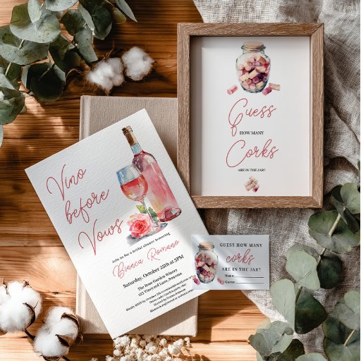 Invitation Fête de mariage Vino Before Vows avec du vin rosé