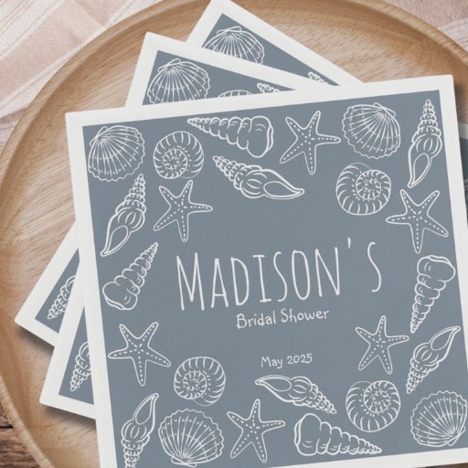 Invitation Invitation à une fête en bord de mer avec Seashells et Starfish Coastal Bridal Shower Invitation! Avec un arrière - plan bleu poussiéreux, cette invitation élégante et entièrement modifiable vous permet de customiser tous les détails de l'événement pour convenir à votre journée spéciale. Le design est magnifiquement encadré de coquillages blancs et de gribouillis d'étoiles de mer dessinés à la main, ce qui crée un charme d'inspiration océanique. Parfait pour une douche de nage sur le thème de la plage, de la mer ou de la mer, cette invitation donne le ton d'un événement élégant et mémorable.