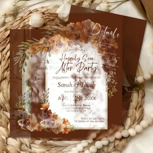 Invitation Fête des mariées d'arc en terre cuite fleurie rust