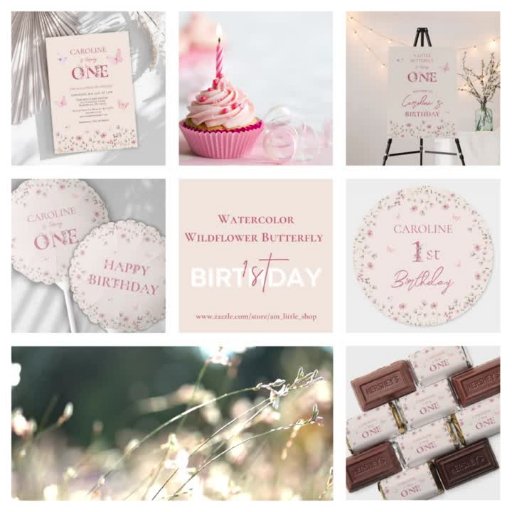 Watercolor Wildflower Butterfly First BirthdayConçu par Angélique David