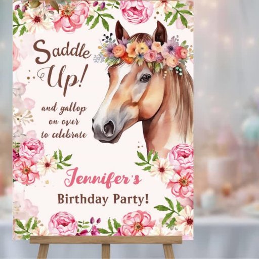 Invitation Filles Cheval 8e anniversaire Saddle Floral Up!