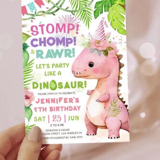 Invitation Filles Dinosaur 5e anniversaire fête mignonne Pink