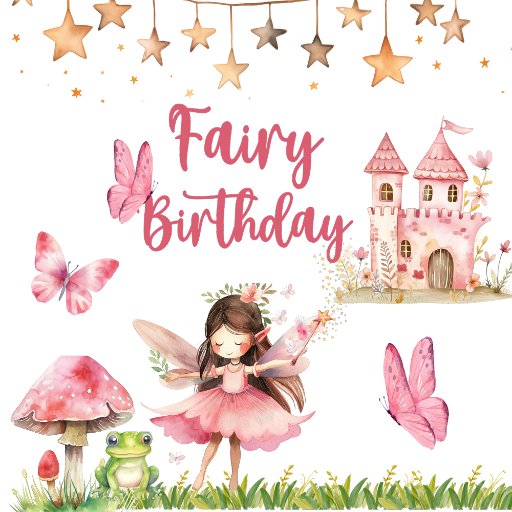 Fairy Tale Dream Anniversaire Invitation : Faites de l'anniversaire de votre enfant un conte de fées se réaliser avec nos invitations enchanteresses. Le design présente un charmant chapelet d'étoiles, des champignons avec une grenouille, et une jolie fée avec une baguette magique, le tout dressé contre un arrière - plan rose clair doux avec un lointain château. Personnalisez les détails en fonction de votre événement et profitez de l'espace supplémentaire à l'arrière pour une liste de souhaits ou des informations supplémentaires. Parfaites pour tous les âges, ces invitations sont assurément un régal. Donnez vie à la magie - achetez le vôtre aujourd'hui!