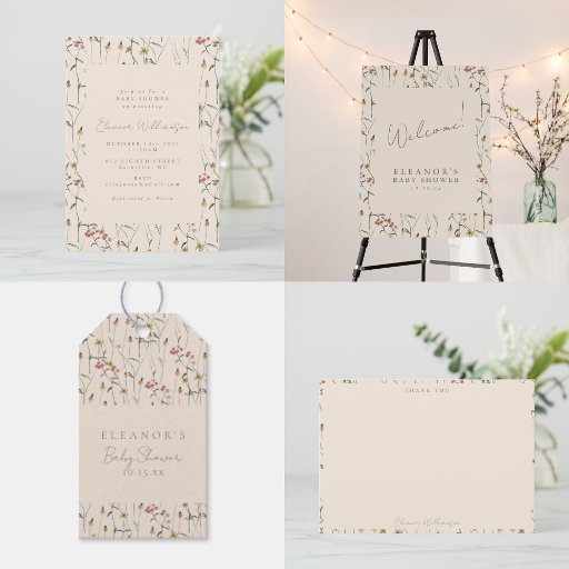 Fleur sauvage Whimsical Floral Boho Baby shower Invitation
