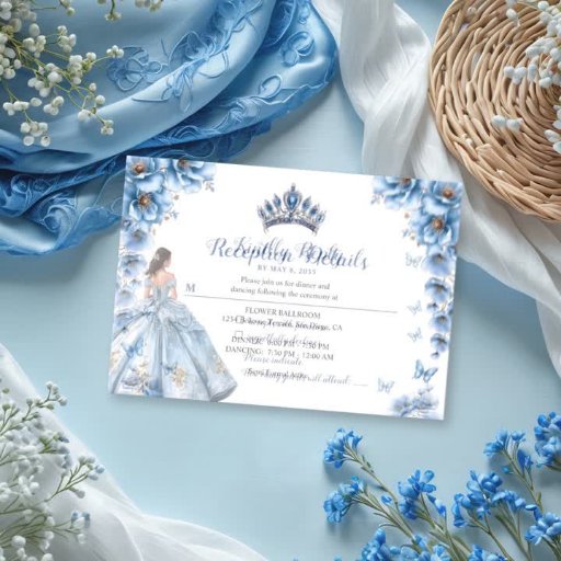 Invitation Flore Whimsical Dusty Bleu Tiara Quinceañera