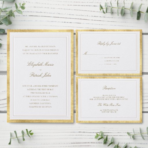Invitation Formal Modern Classic Elevated Gold Pearl Wedding