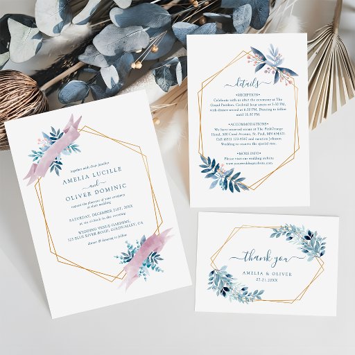 Invitation Geometric Dusty Blue Elegant Rehearsal Dinner