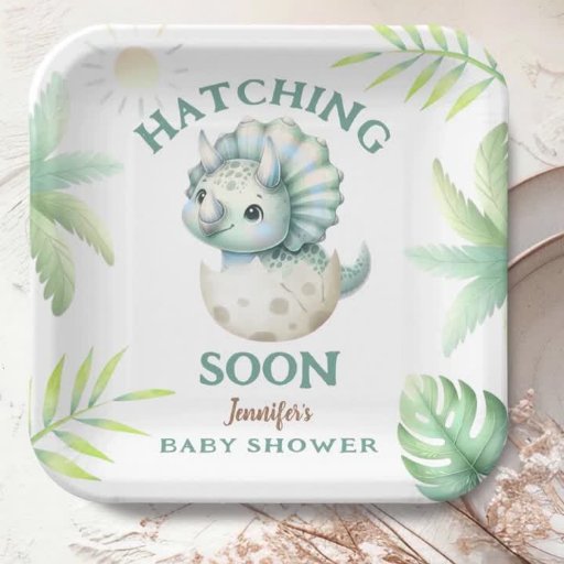 Hatching Soon Triceratops Boy Dinosaur Baby ShowerConçu par H-Art Studio Design