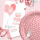 Ces invitations douces présentent une numériquement bande illustrée de trois ballons dans les tons roses avec des pois et des coeurs comme décorations.