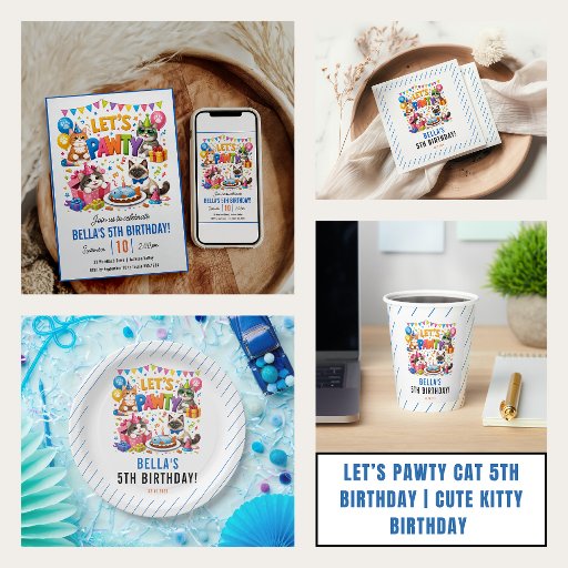 Invitation Let’s Pawty Cat 5th Birthday | Cute Kitty Birthday